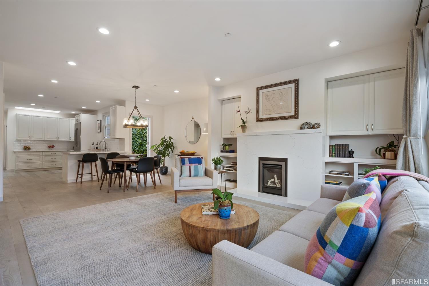 This exquisite home showcases a chic, contemporary renovation w/coveted open concept kitchen-dining-living room perfect for today's lifestyle. The stunning kitchen is the heart of the home with Quartz counters accented with subway-tiled backsplash, & convenient counter seating. The LR w/quartz-faced fireplace enjoys sunny western exposure. The adjacent dining area opens to a fresh air deck ideal for a BBQ or herb garden. 2 spacious bedrooms & 1.5 beautifully renovated baths complete the main level. The lower level features the sublime primary suite w/French doors to the walk-out garden. The ensuite, spa-style BA has double sinks within a marble vanity, a glass-enclosed stall shower, & a luxurious soaking tub. Opposite, a bonus room may be used flexibly as a gym or office. The garage has interior access. Completely renovated to the studs and completed in 2019. This chic home is a jewel box!