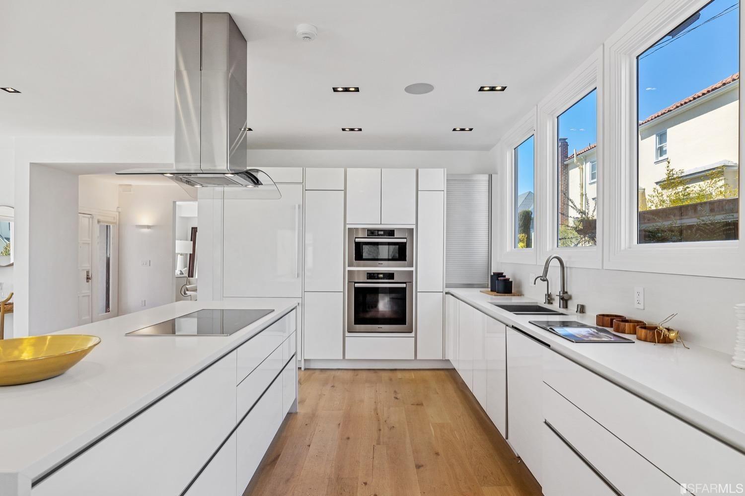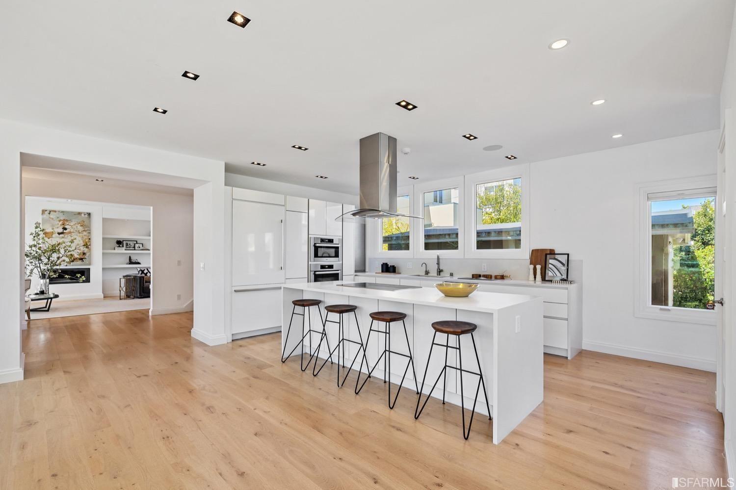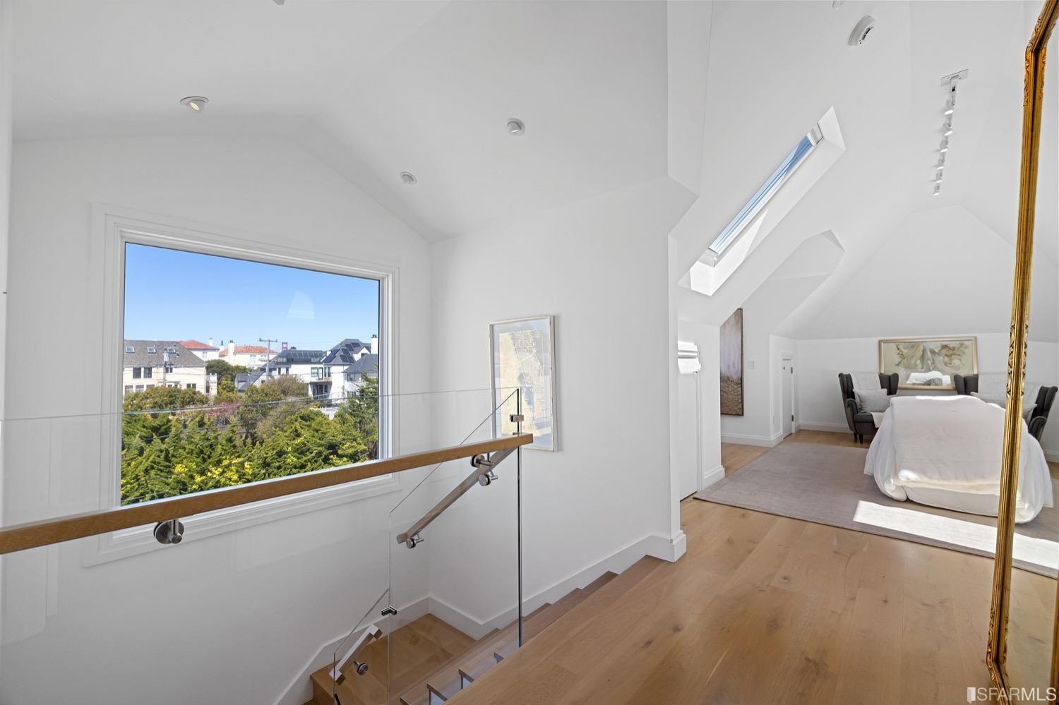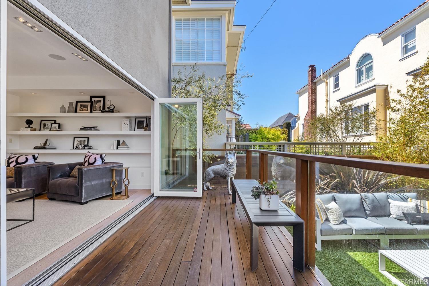 Experience luxury in this fully renovated contemporary home in the desirable Sea Cliff neighborhood. With abundant natural light, an open floor plan, and high-end finishes, it's ideal for stylish entertaining and relaxation. The grand entry foyer features a striking glass staircase, setting the tone for modern finishes. The formal living room showcases a sleek fireplace, and accordion doors open to a deck and landscaped backyard for seamless indoor-outdoor living. The dazzling white kitchen is the heart of this home, with a large island and counter seating for four. It flows seamlessly into the dining room & casual living space, perfect for hosting guests. Upstairs, discover the primary suite w/walk-in closet, 2 additional bedrooms, and a luxurious dual-sink bathroom w/ a soaking tub & shower. A large bedroom offers a living area for versatile use. The top floor, w/ vaulted ceilings and skylights, can be a home office, gym, media room, or guest suite, complete w/ a full bathroom. The lower level provides bonus space perfect for storage, a gym, media area, etc. A detached 2-car garage and landscaped yd complete this exceptional property. Located in the sought-after Sea Cliff neighborhood, it is just steps to China Beach, Baker Beach, Lands End Trail & The Presidio.