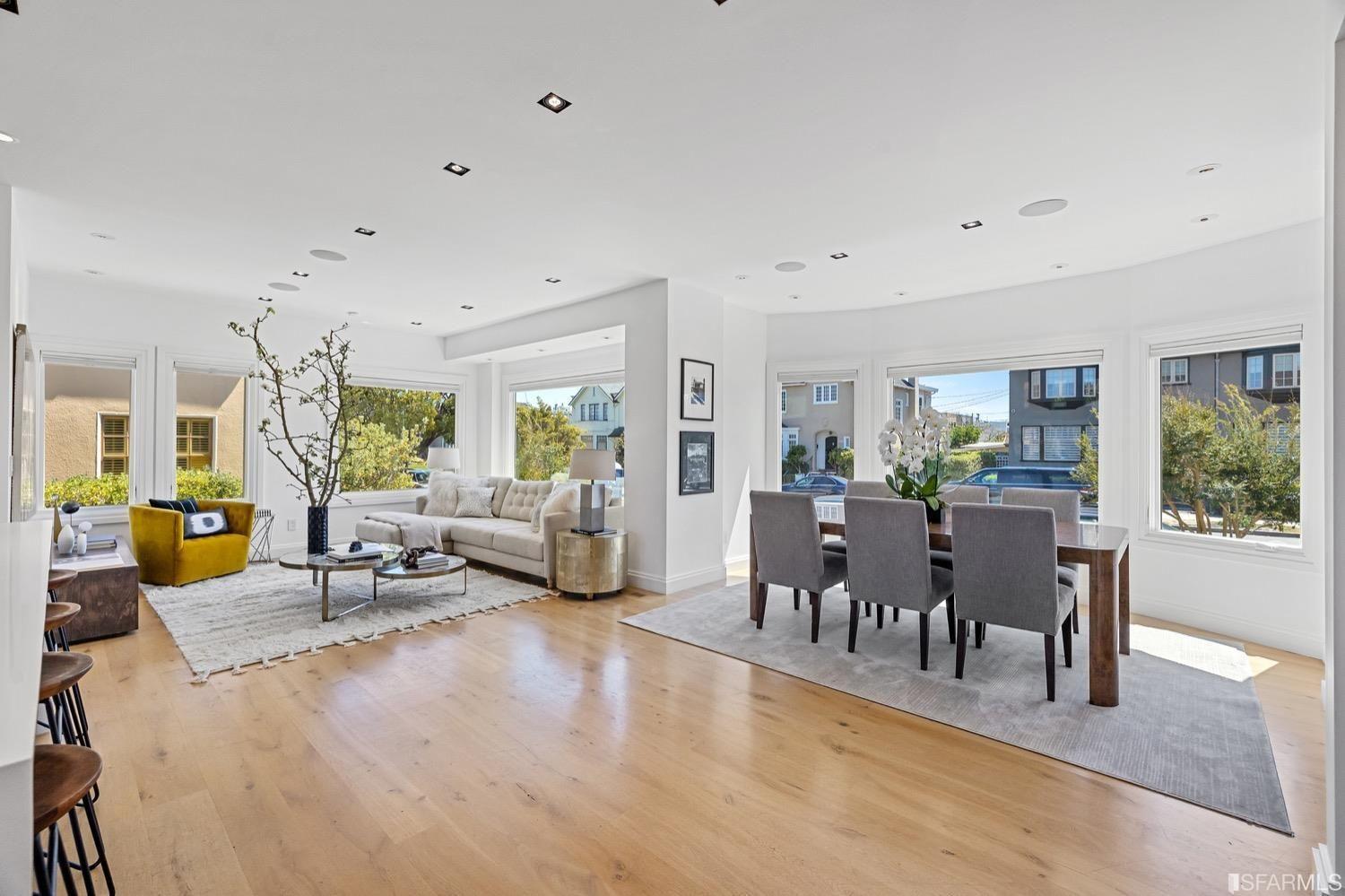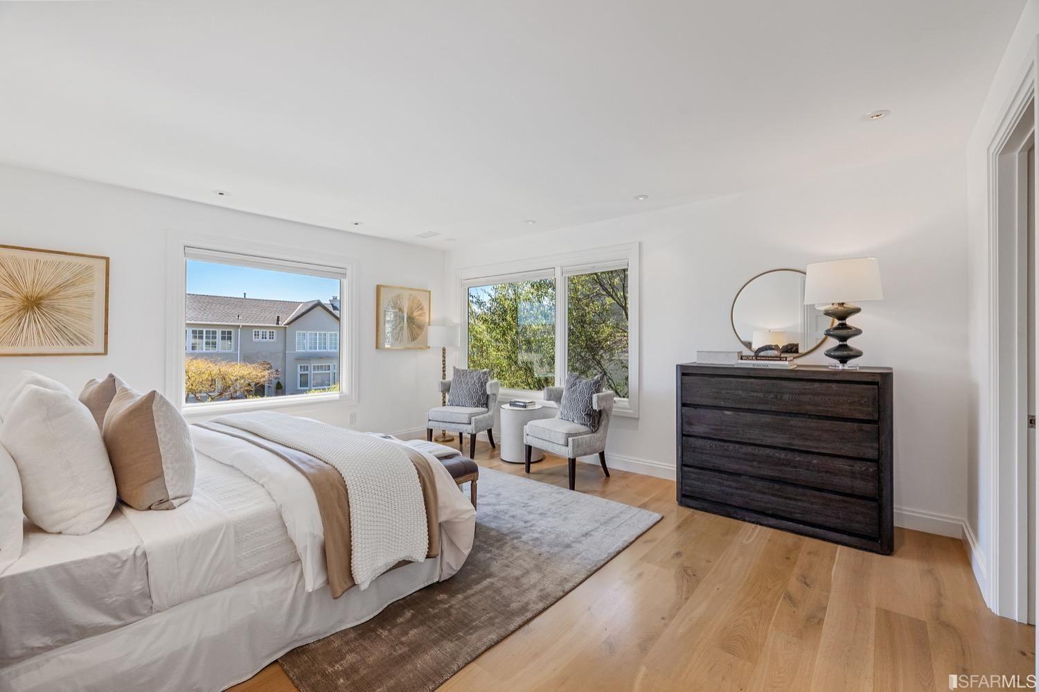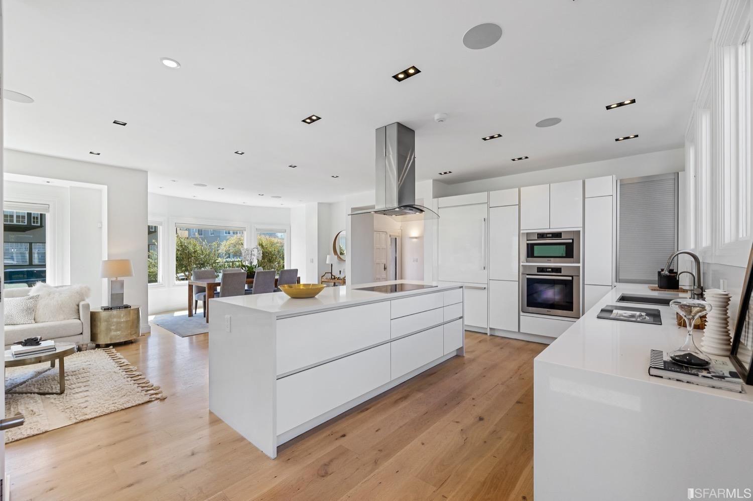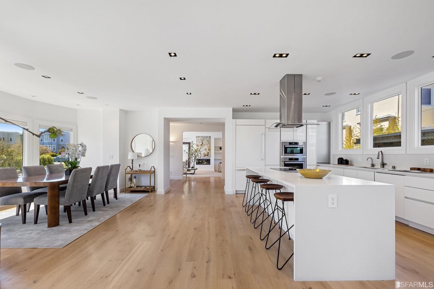 Experience luxury in this fully renovated contemporary home in the desirable Sea Cliff neighborhood. With abundant natural light, an open floor plan, and high-end finishes, it's ideal for stylish entertaining and relaxation. The grand entry foyer features a striking glass staircase, setting the tone for modern finishes. The formal living room showcases a sleek fireplace, and accordion doors open to a deck and landscaped backyard for seamless indoor-outdoor living. The dazzling white kitchen is the heart of this home, with a large island and counter seating for four. It flows seamlessly into the dining room & casual living space, perfect for hosting guests. Upstairs, discover the primary suite w/walk-in closet, 2 additional bedrooms, and a luxurious dual-sink bathroom w/ a soaking tub & shower. A large bedroom offers a living area for versatile use. The top floor, w/ vaulted ceilings and skylights, can be a home office, gym, media room, or guest suite, complete w/ a full bathroom. The lower level provides bonus space perfect for storage, a gym, media area, etc. A detached 2-car garage and landscaped yd complete this exceptional property. Located in the sought-after Sea Cliff neighborhood, it is just steps to China Beach, Baker Beach, Lands End Trail & The Presidio.