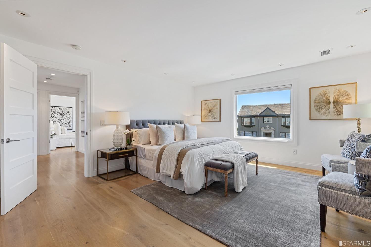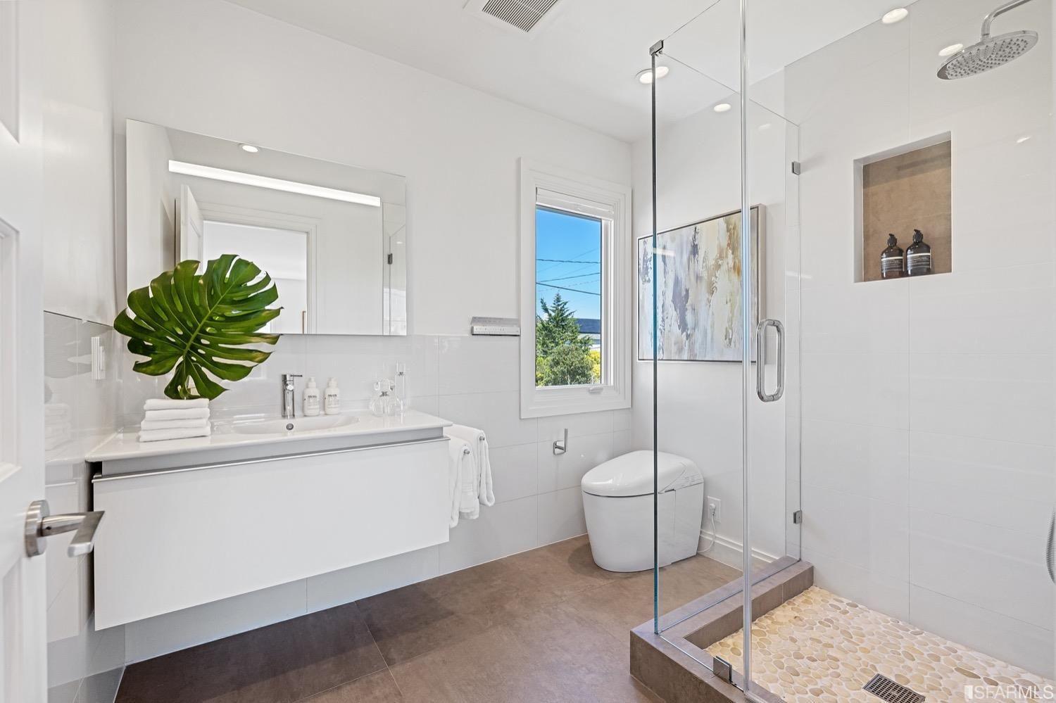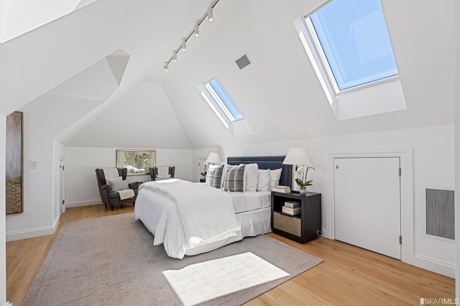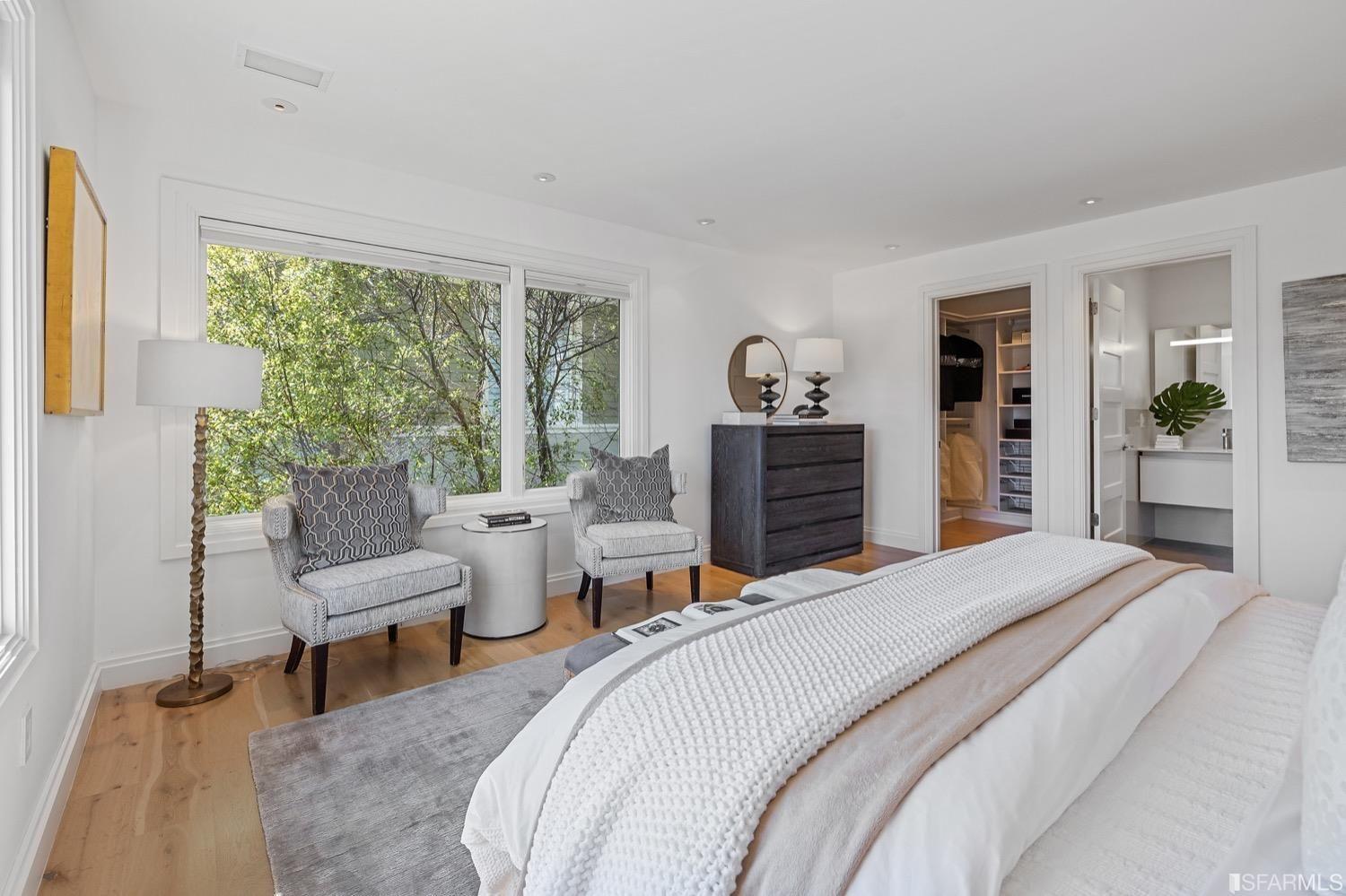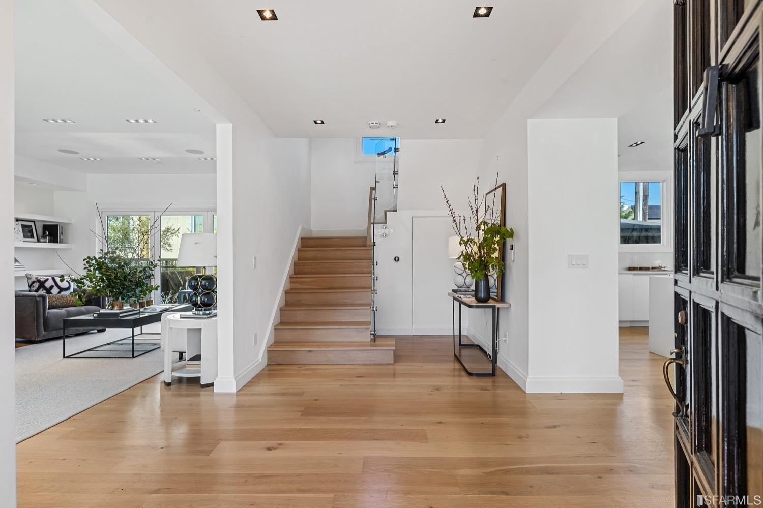 Experience luxury in this fully renovated contemporary home in the desirable Sea Cliff neighborhood. With abundant natural light, an open floor plan, and high-end finishes, it's ideal for stylish entertaining and relaxation. The grand entry foyer features a striking glass staircase, setting the tone for modern finishes. The formal living room showcases a sleek fireplace, and accordion doors open to a deck and landscaped backyard for seamless indoor-outdoor living. The dazzling white kitchen is the heart of this home, with a large island and counter seating for four. It flows seamlessly into the dining room & casual living space, perfect for hosting guests. Upstairs, discover the primary suite w/walk-in closet, 2 additional bedrooms, and a luxurious dual-sink bathroom w/ a soaking tub & shower. A large bedroom offers a living area for versatile use. The top floor, w/ vaulted ceilings and skylights, can be a home office, gym, media room, or guest suite, complete w/ a full bathroom. The lower level provides bonus space perfect for storage, a gym, media area, etc. A detached 2-car garage and landscaped yd complete this exceptional property. Located in the sought-after Sea Cliff neighborhood, it is just steps to China Beach, Baker Beach, Lands End Trail & The Presidio.