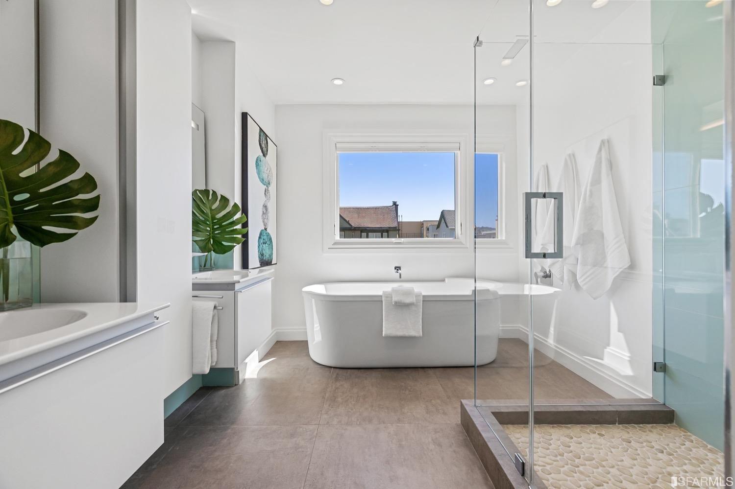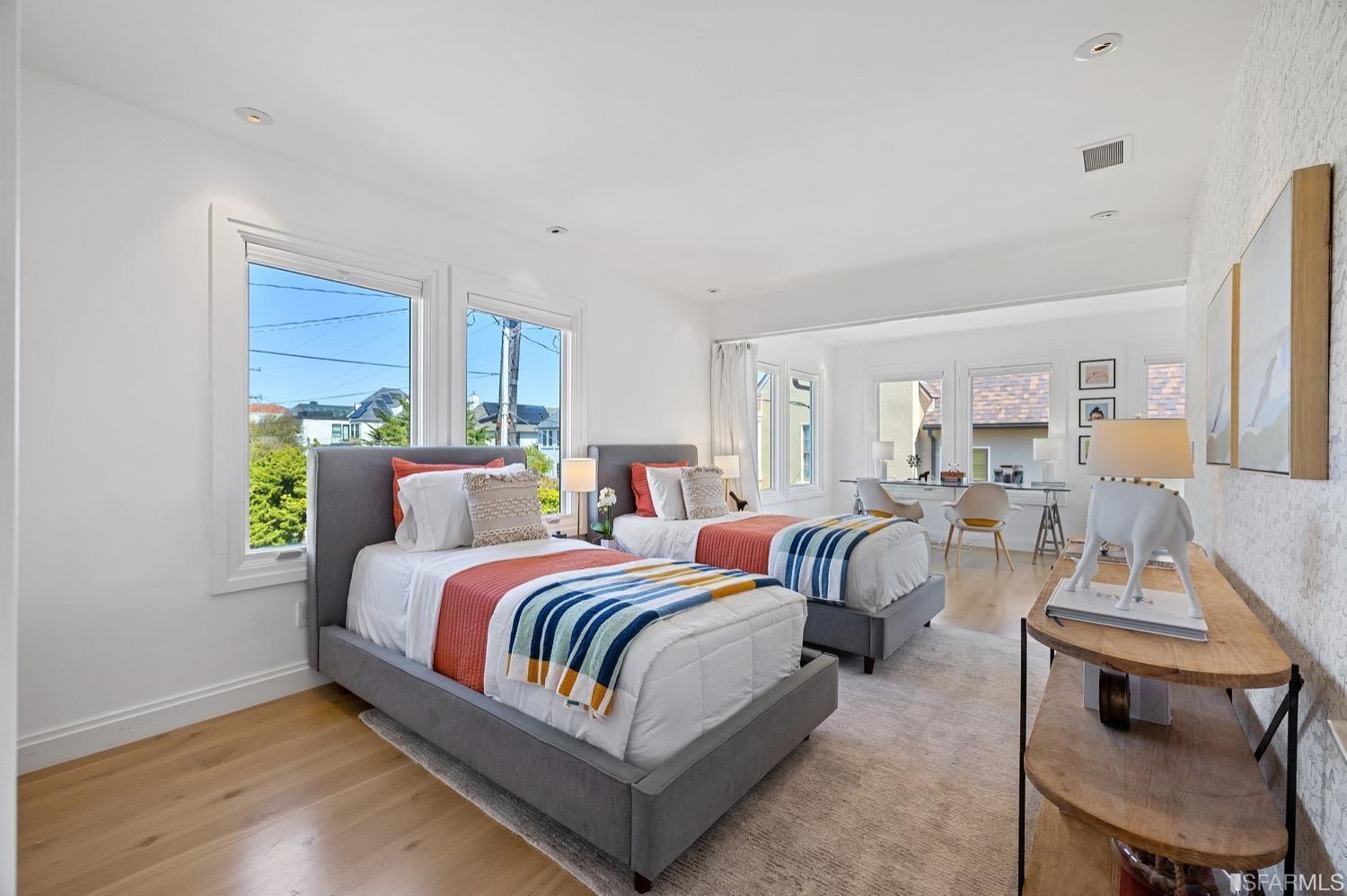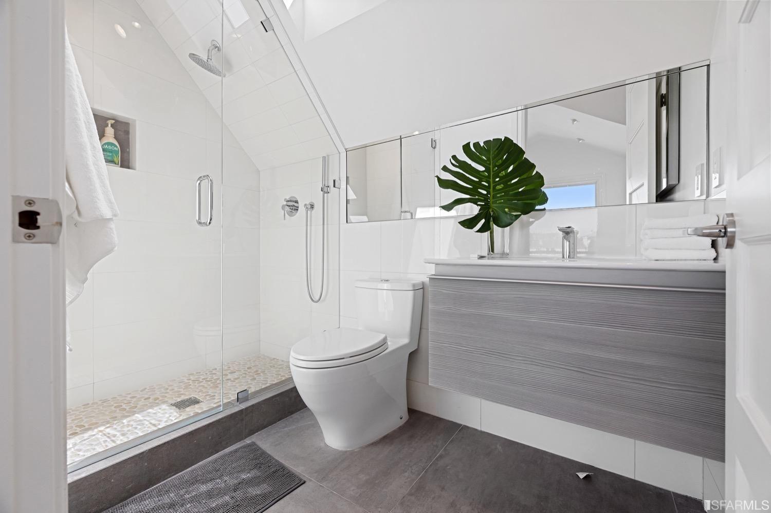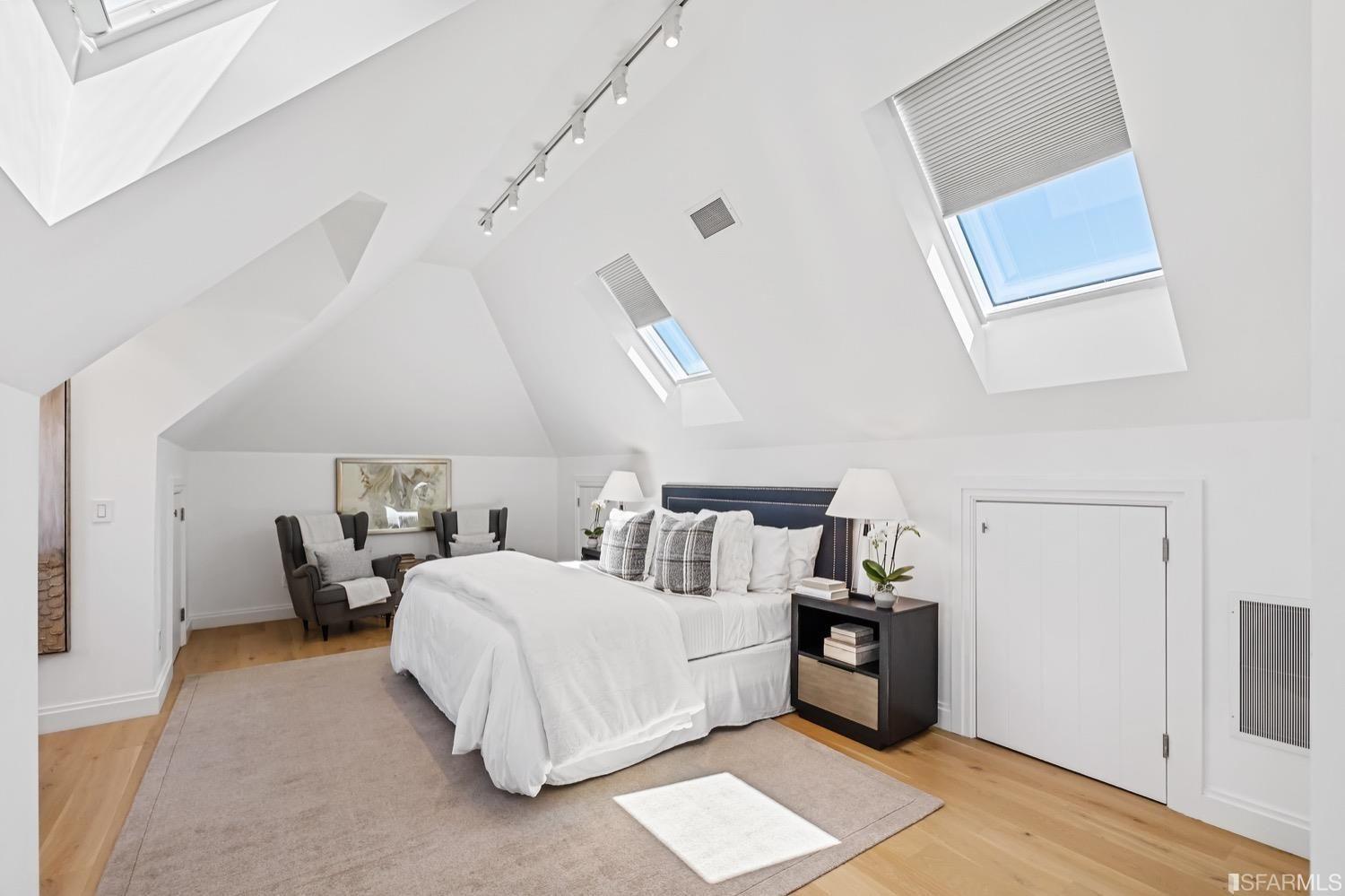 Experience luxury in this fully renovated contemporary home in the desirable Sea Cliff neighborhood. With abundant natural light, an open floor plan, and high-end finishes, it's ideal for stylish entertaining and relaxation. The grand entry foyer features a striking glass staircase, setting the tone for modern finishes. The formal living room showcases a sleek fireplace, and accordion doors open to a deck and landscaped backyard for seamless indoor-outdoor living. The dazzling white kitchen is the heart of this home, with a large island and counter seating for four. It flows seamlessly into the dining room & casual living space, perfect for hosting guests. Upstairs, discover the primary suite w/walk-in closet, 2 additional bedrooms, and a luxurious dual-sink bathroom w/ a soaking tub & shower. A large bedroom offers a living area for versatile use. The top floor, w/ vaulted ceilings and skylights, can be a home office, gym, media room, or guest suite, complete w/ a full bathroom. The lower level provides bonus space perfect for storage, a gym, media area, etc. A detached 2-car garage and landscaped yd complete this exceptional property. Located in the sought-after Sea Cliff neighborhood, it is just steps to China Beach, Baker Beach, Lands End Trail & The Presidio.